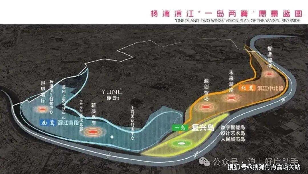 杨浦滨江作为世界级滨水示范区,在总体目标引领下,构建“一岛两翼”愿景蓝图。复兴岛作为是黄浦江唯一内陆岛,自2024年上海量子城市时空创新基地启动,便围绕“数字智能岛、设计艺术岛、人民城市岛”的定位全速发展,依托美团、B站、抖音等数字经济总部产业布局,岛上保留“白庐”等历史建筑,兼顾生态与怀旧风格,致力于打造最具活力、可持续性与智能化的1平方公里区域。未来将成为激活一江两岸发展、开启黄浦江全新机遇的关键引擎。至此,一线滨江更烫金、更潮流、更高阶的区域,距离全部落成真的仅一步之遥了。