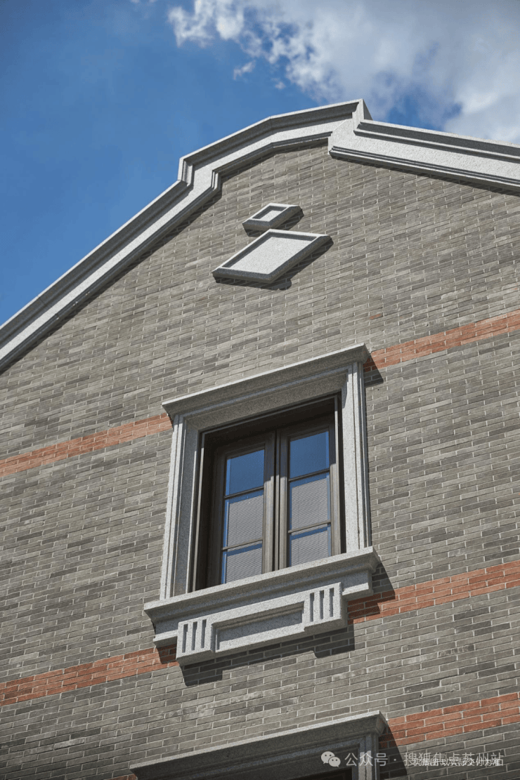 据悉,为重现百年前老建筑的韵味,保利·永兴里设计团队深入考究历史建筑原砖尺寸,重新开模定制外立面砖,采用大面灰砖+红砖腰线的经典排布手法,延续传统建筑的视觉特征。墙面选用深灰、中灰、浅灰三种灰度面砖,通过1:7:2的最优比例拼接,搭配6色砖的层次组合,营造出丰富细腻的立面效果。采用平砖顺砌错缝法,经过上百次系统调试与现场预排,最终由工匠手工微调后上墙砌筑,确保每一块砖的排布都精准还原历史建筑的质感与神韵。