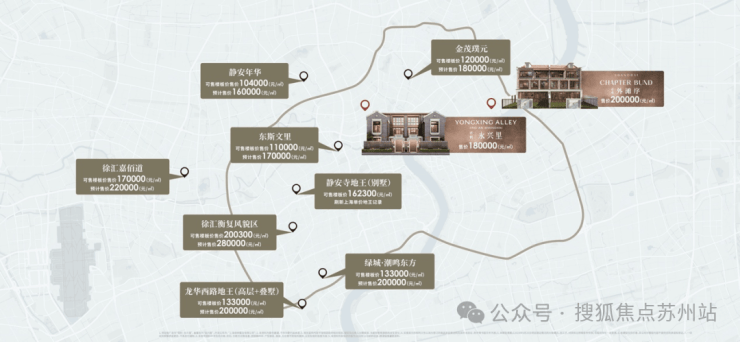 纵观保利永兴里周边新房,弘安里别墅(总价约6000万-2.5亿)、中兴傲舍大平层(总价4000万+)、静安里别墅(总价5000万-1亿)。当上海内环高层业态起跑线w,保利·永兴里双拼别墅相当能打,同样地段价格,没这业态,同样业态地段,没这价格,同样价格业态,没这地段。对于既要还要的置业者来说,保利·永兴里内环静安+双拼别墅+3000万起总价可谓集齐全部爆款参数。