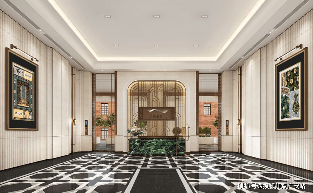 更好更奢的归家门庭,嘉佩乐酒店风格,海派元素充满空间的每一个角落,地面的复古花纹,金属镂空装饰墙,普拉达绿的奢石点缀,仿佛穿越到了摩登时代。