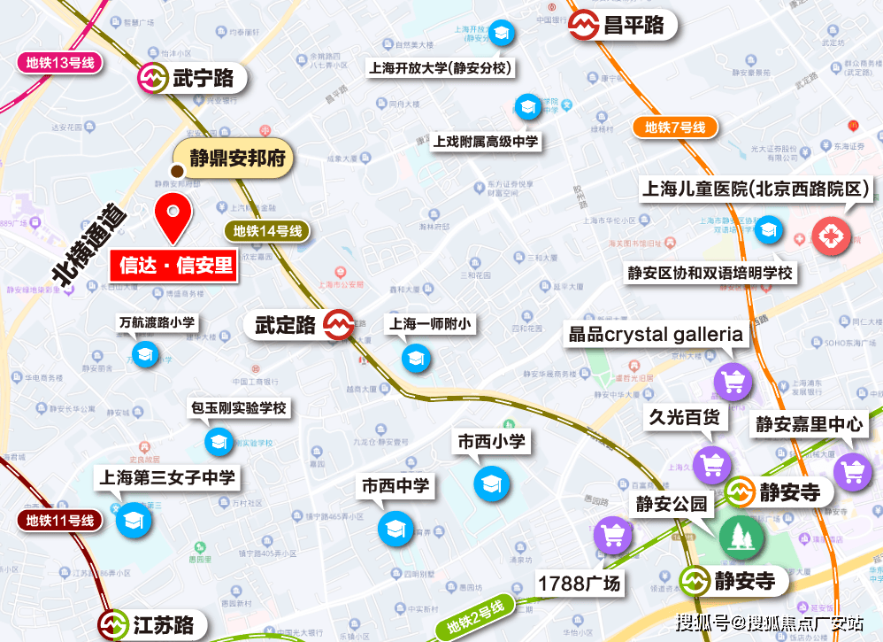 交通配套方面:项目还有着高效的出行系统,增强了通达性。13、14号线都步行可达,武宁路站和武定路站都步行约500米左右。1公里范围内,地铁线号线号线的昌平路、隆德路、江苏路、静安寺等市中心地铁站都可步行到达。