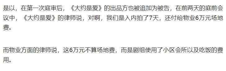 没想到物业竟也开始甩锅,说他们这些剧组给的不能够是场地费而是他们剧组进入别墅园区会所以及他们剧组吃饭的费用,说白了也就是“物业费”。