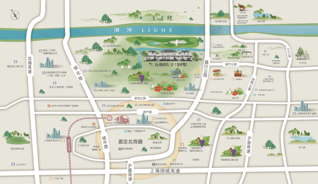 项目位处嘉定北生态涵养区,扼守上海西北门户之地,板块辐射长三角核心区域,服务嘉昆太地区约500万城镇群人口,是政府着力打造的生态品牌。