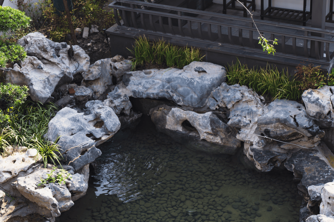 园区整体在布局上采用了街巷式的组团设计,再现“五街八巷九坊”古典风貌,而造景上,则内承中国历史名园营造法式与海派艺术神韵,成就“两轴九园”,绘就一派清雅国风。