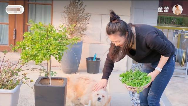 从照片中可以看到,童蕾的菜园位于浙江的家中,院子非常大,还有草坪,环境非常清新。