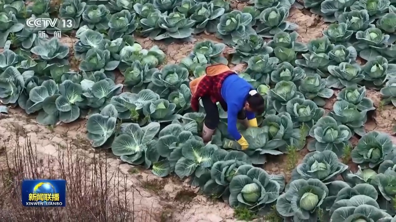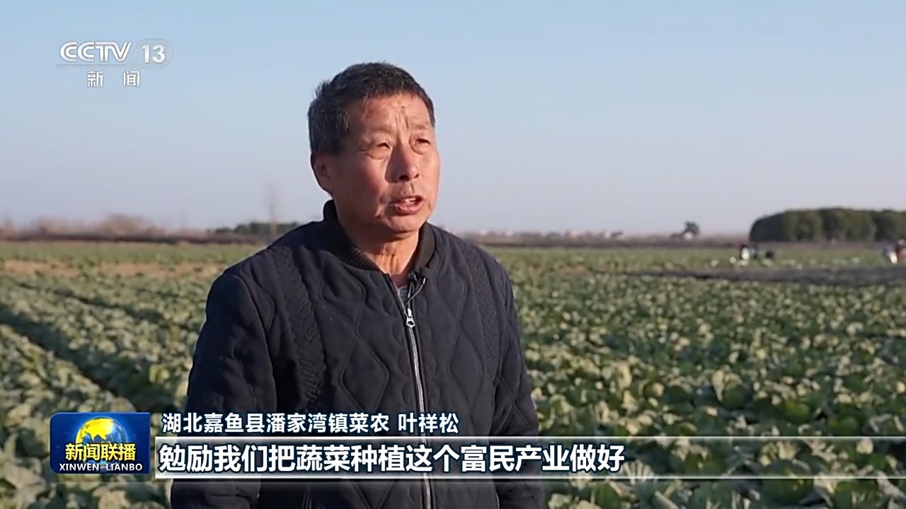 湖北嘉鱼潘家湾镇十里蔬菜长廊里,甘蓝菜喜获丰收,村民们正忙着采摘、销售。2024年11月,习来到这里考察,勉励大家把蔬菜种植这个富民产业做好,菜农叶祥松当时就在场。