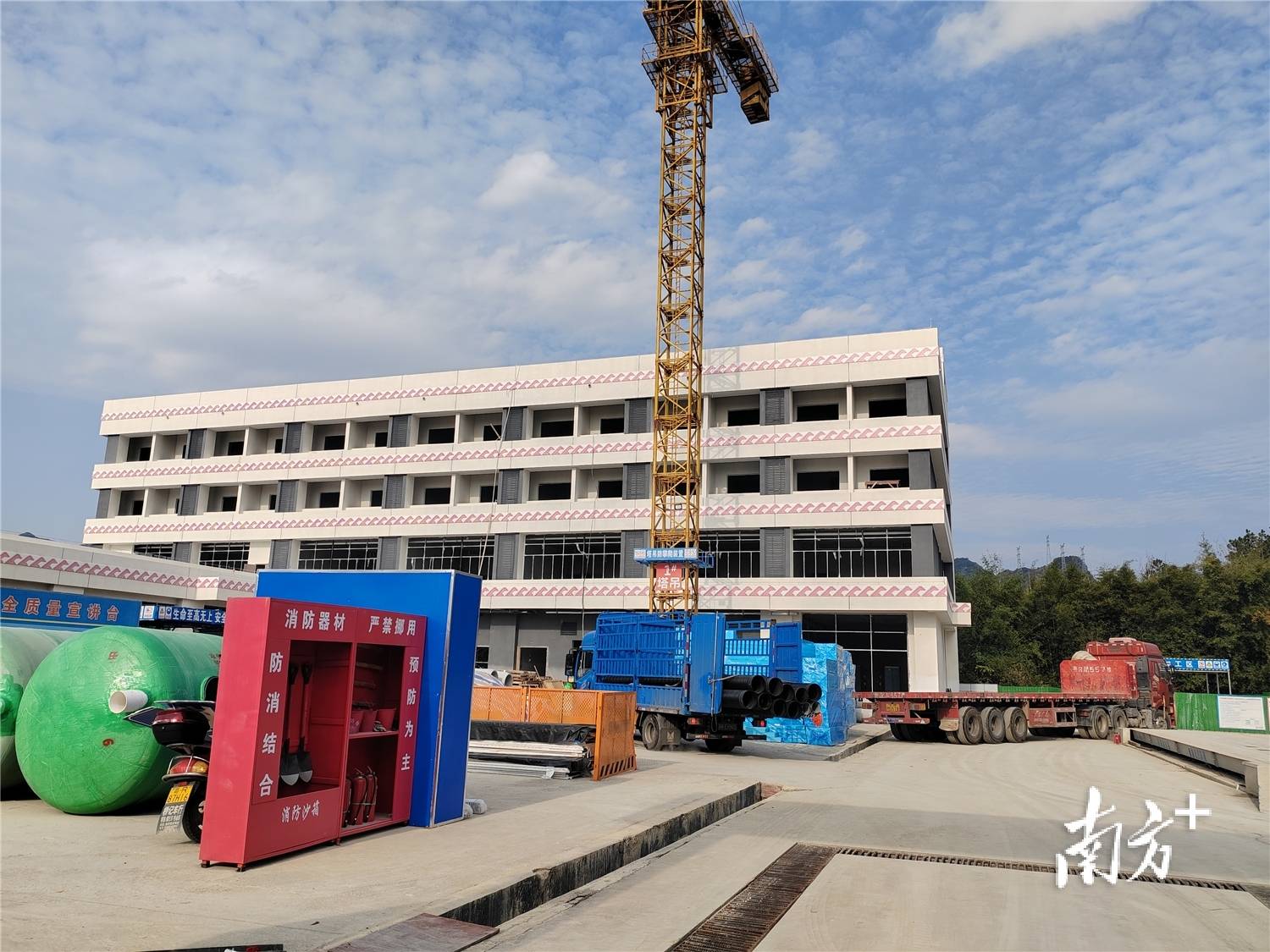 花都石泉中学项目主体建筑已全面封顶,2026年将让连南学子在家门口就享受到对标广州的优质教育资源。南方+记者 陈国飞 摄