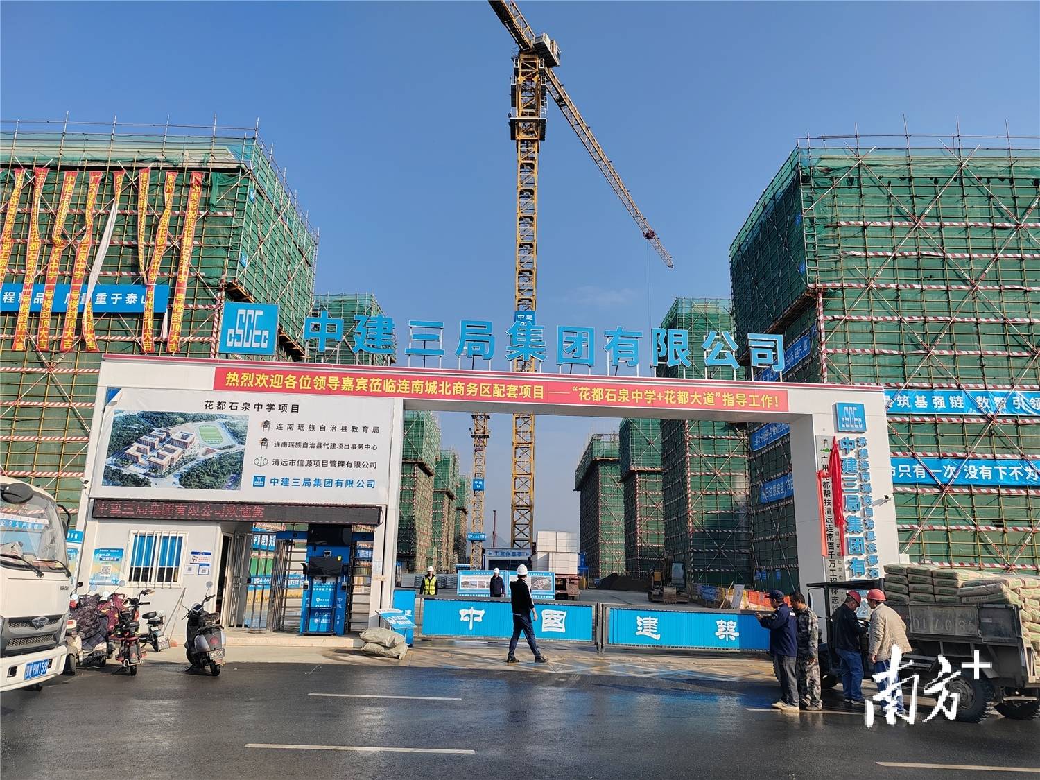 该项目由中建三局深圳公司承建,充分发挥央企优势助推“百千万工程”落地见效。在两地各级领导及广清指挥部的大力支持下,在工作队的全力督促协调下,在众人翘首以盼下,花都石泉中学终于在2024年10月正式开工建设。