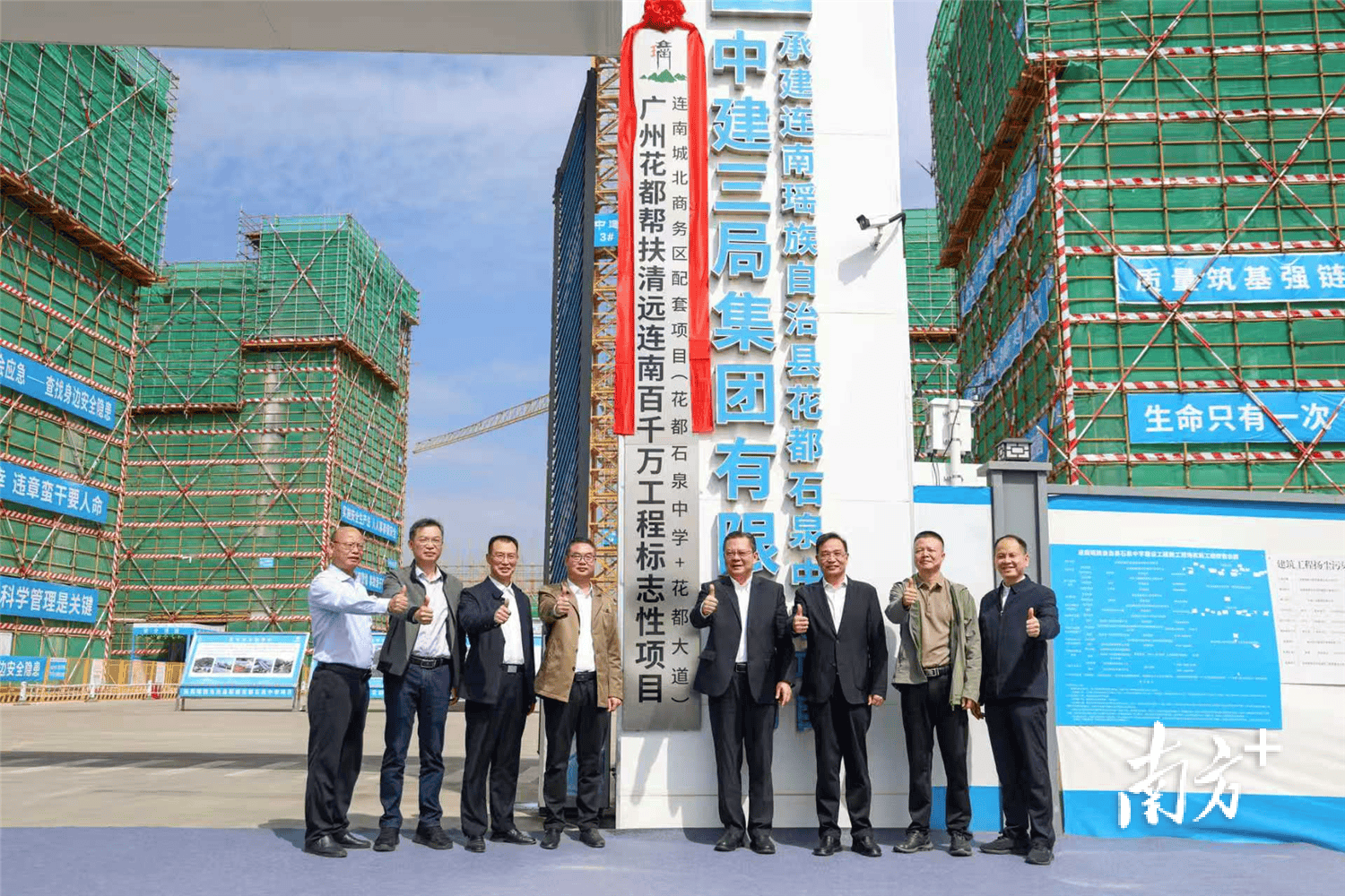 广清指挥部和花都连南两地主要领导参加打造广州花都帮扶清远连南“百千万工程”标志性项目--连南城北商务区配套项目(花都石泉中学+花都大道)揭牌仪式。工作队供图