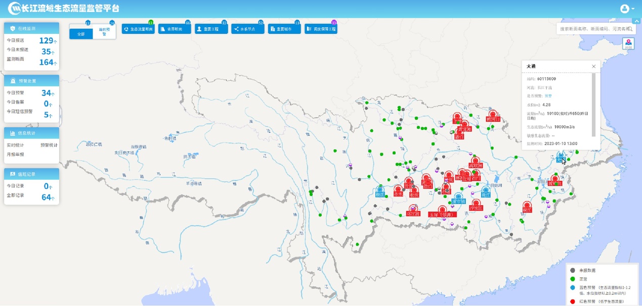 开展断面生态流量实时监测、预报预警和响应处置,图为系统截图。(图片来源:水利部)