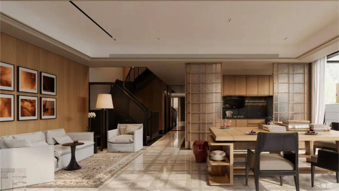 这个客餐厅的面积就已经可以容纳一个大型的家庭聚会,居住体验堪比约250㎡以上的大平层。