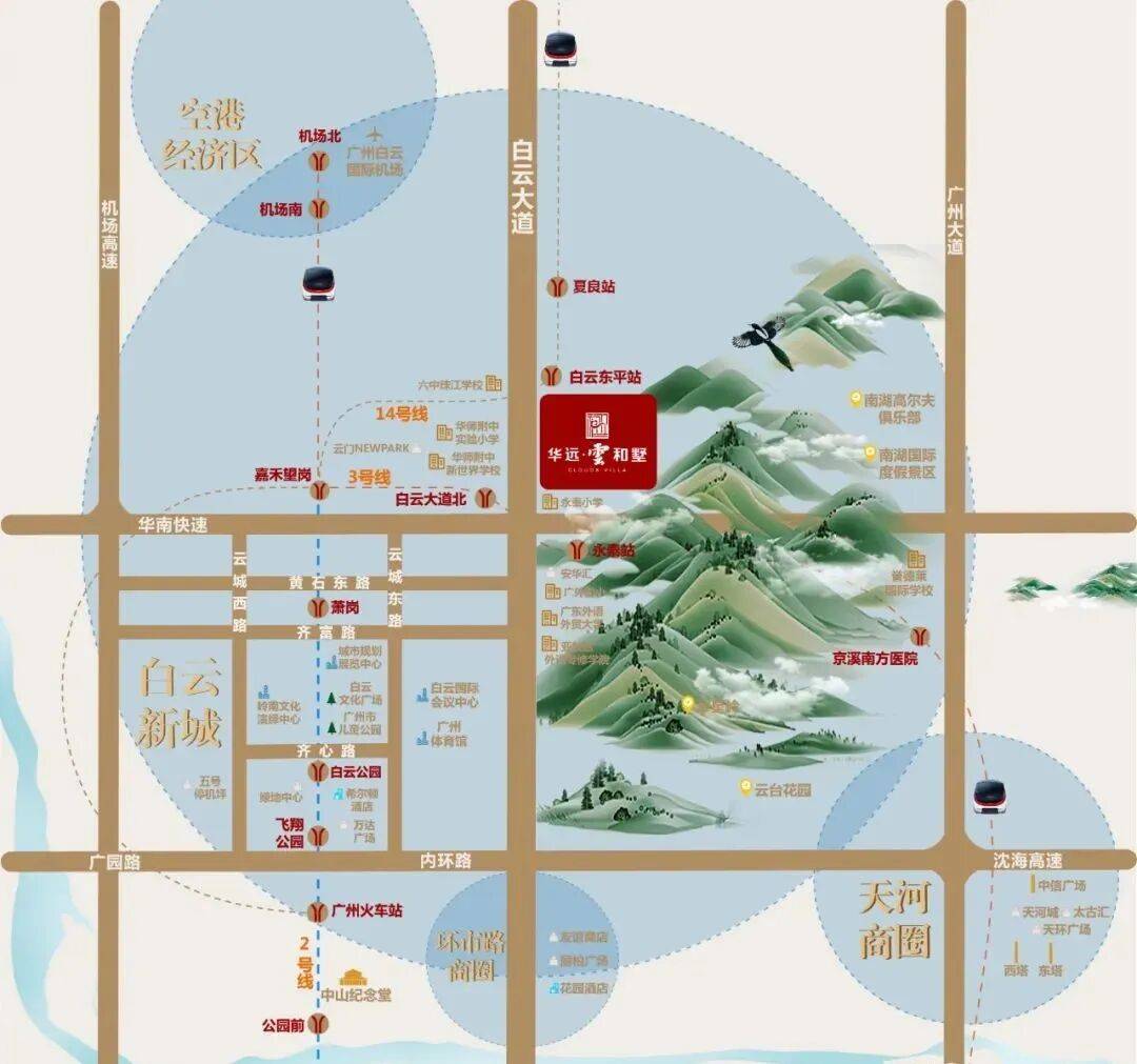 坐拥CBD。项目处白云新城CBD,配套设施成熟完善(商业:白云万达、五号停机坪、绿地中心、岭南新世界等;教育:华师附小、永泰小学、誉德莱国际学校、广东外国语学院等;医疗:东仁医院、中山医博济(白云)医院等);“四横四纵”路网格局,交通便利;