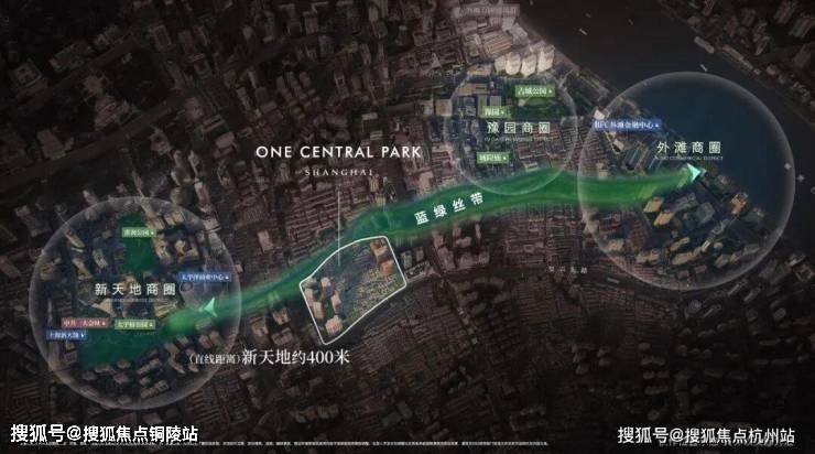 距离新天地直线米,作为蓝绿丝带规划上的关键节点,随着大新天地东进南拓战略逐步实施,通过水景、绿地和公共空间,串联新天地、豫园、外滩三大世界级商业版图。