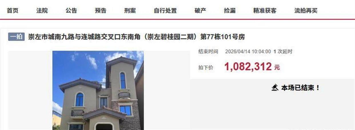 捡漏成功!崇左碧桂雷速体育- 雷速体育app下载- 足球篮球专业直播平台园的别墅被拍卖3人竞拍还底价108万成交
