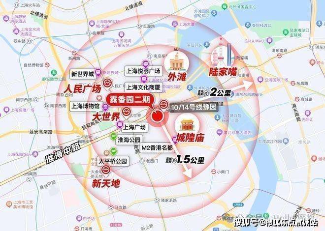 作为上海的绝对市心,露香园直线距离人民广场、淮海路、外滩、豫园等上海市地标性区域均不超过1.5公里,距离陆家嘴直线公里。