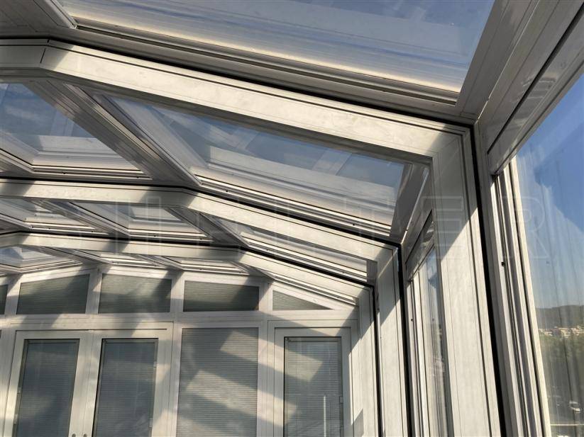 稍微好一点的就是这种钢结构加玻璃组成的固定阳光房,框架稳固,板材透光,但是也存在一个弊端,夏天的时候固定阳光房不仅是热,还非常的闷,让人无法在里面好好体验。
