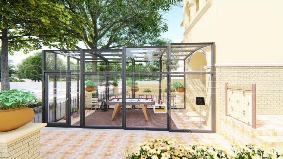 板材则抛弃传统玻璃,采用聚碳酸酯板,透光效果和玻璃差不多,但它本身导热值就低,表面还有UV涂层,更是有隔离99.9%紫外线的效果。移动阳光房的设计还可以让阳光房随时改变覆盖面积,保证了室内有良好的通风效果。而且还可以加装遮阳帘等,这样夏天在里面就没有那么闷热了。