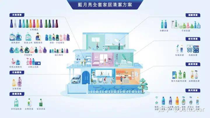 在财报中,蓝月亮还提及了“知识营销”,表示“本集团拟提供更多种类的产品及更多定制服务,并改善其忠诚度计划,以提升客户体验”。通过线上社媒(官方账号矩阵)、线下清洁顾问、商业广告及明星代言等品牌沟通方式,以期让消费者重新了解家庭清洁知识。