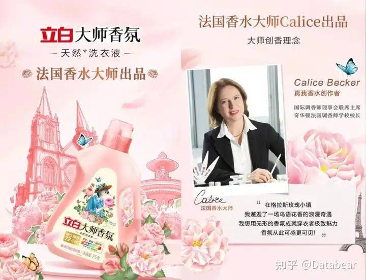 立白香氛大师由殿堂级法国香水大师、真我香水创作者 Calice Becker 出品,作为国际香料香精巨头奇华顿的首席调香师,Calice Becker 的权威背书极大提升了产品的整体格调。此外,产品运用了生长于“世界香水之都”的格拉斯玫瑰作为原料。原料的稀缺属性和浪漫属性不仅彰显了产品的高品质,也精准击中了消费者对生活仪式感的追求。