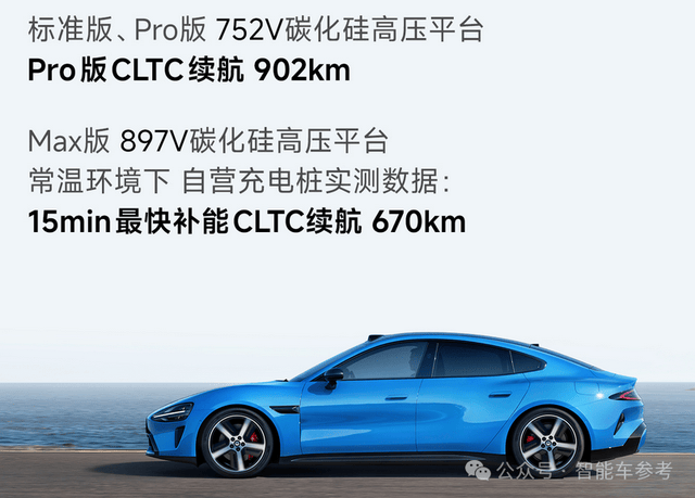 标准版、Pro版车型配备752V碳化硅高压平台(原486V),Max版则从871V升级到了897V。