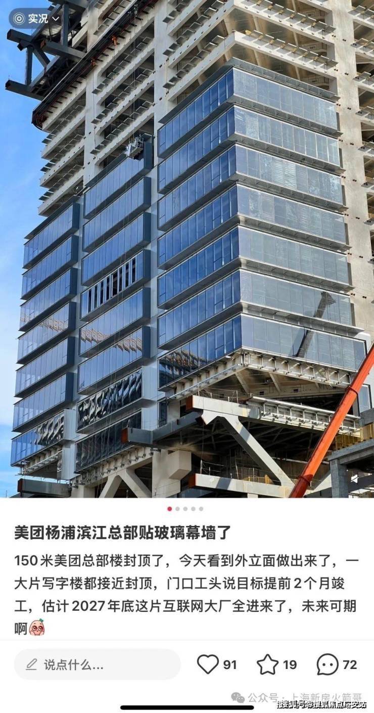 通过最新现场实拍,上海中建壹品外滩元境官方售楼处电话:√√√【已认证】美团150米总部大楼已经在铺设玻璃幕墙,小红书已经有博主实拍爆料:
