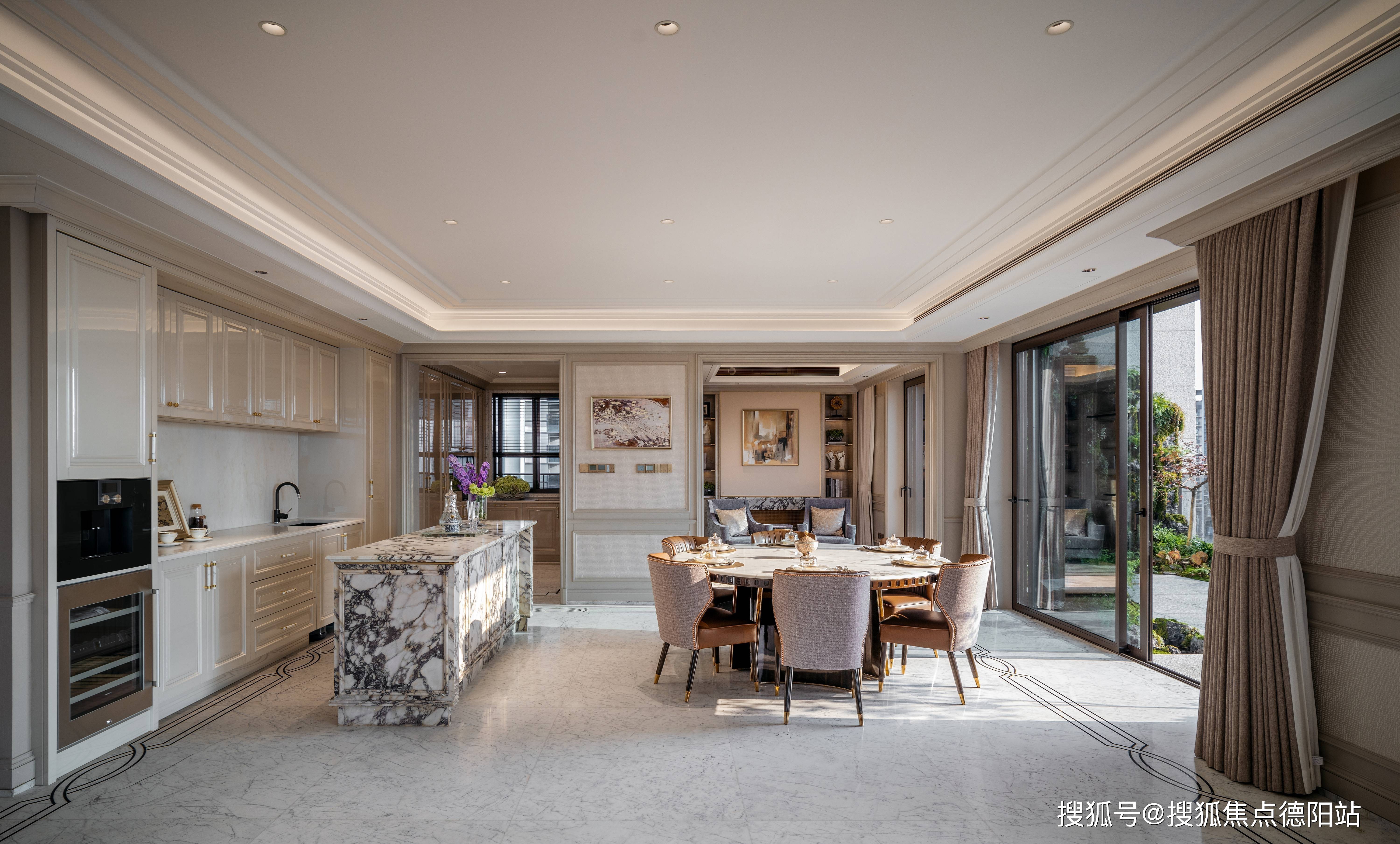 项目复刻其经典装饰主义,约10.5m挑高大堂,挑空拱门架构的恒温泳池、孔雀廊般的艺术展廊,层叠线条,艺术家真品装置等,让峯层生活从此同频华尔道夫