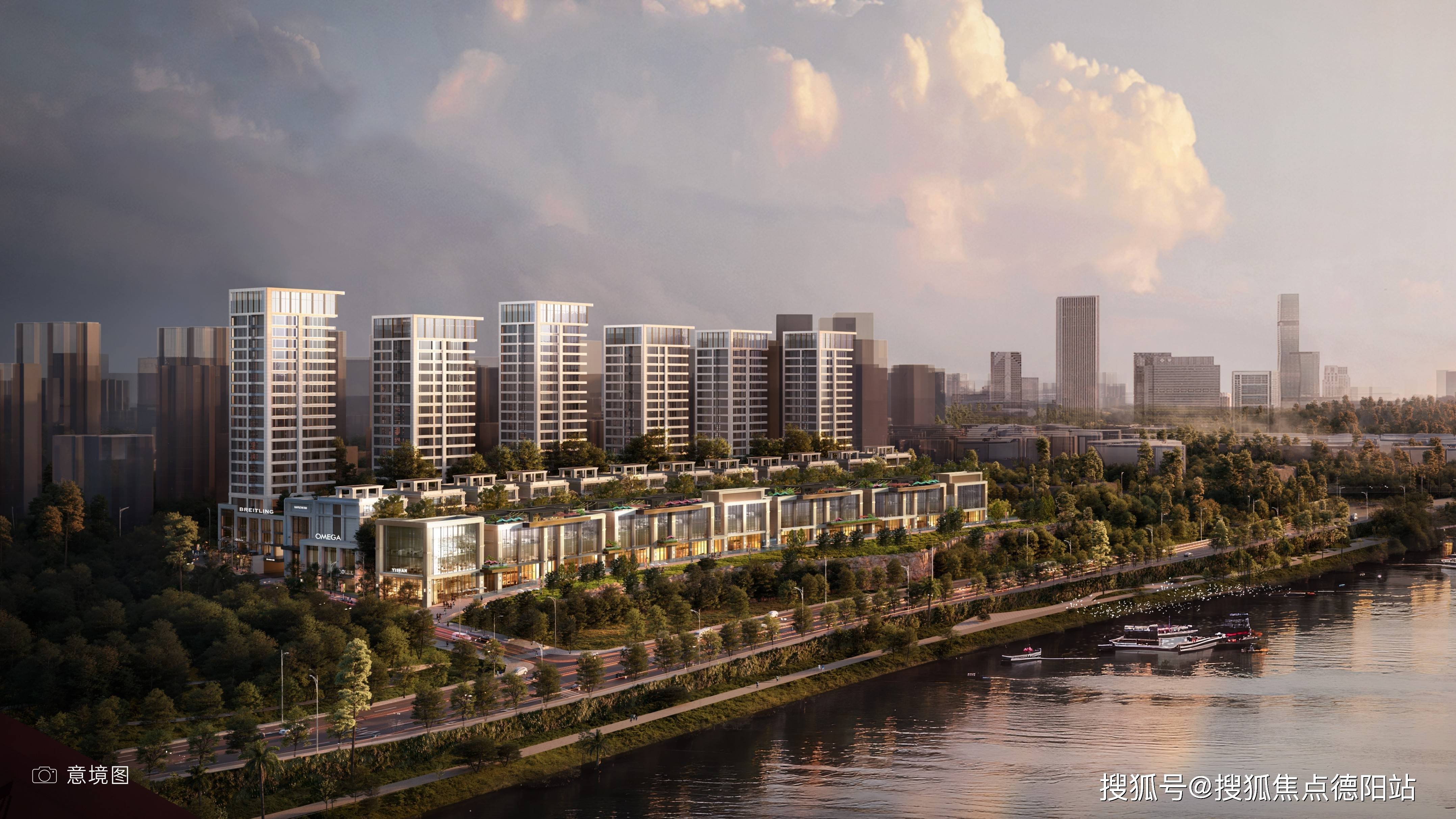 项目全奢级石材干挂,于水岸再次美学激荡,塑造建筑雕塑质感与稳固挺拔的形象,对话城市理想与高度
